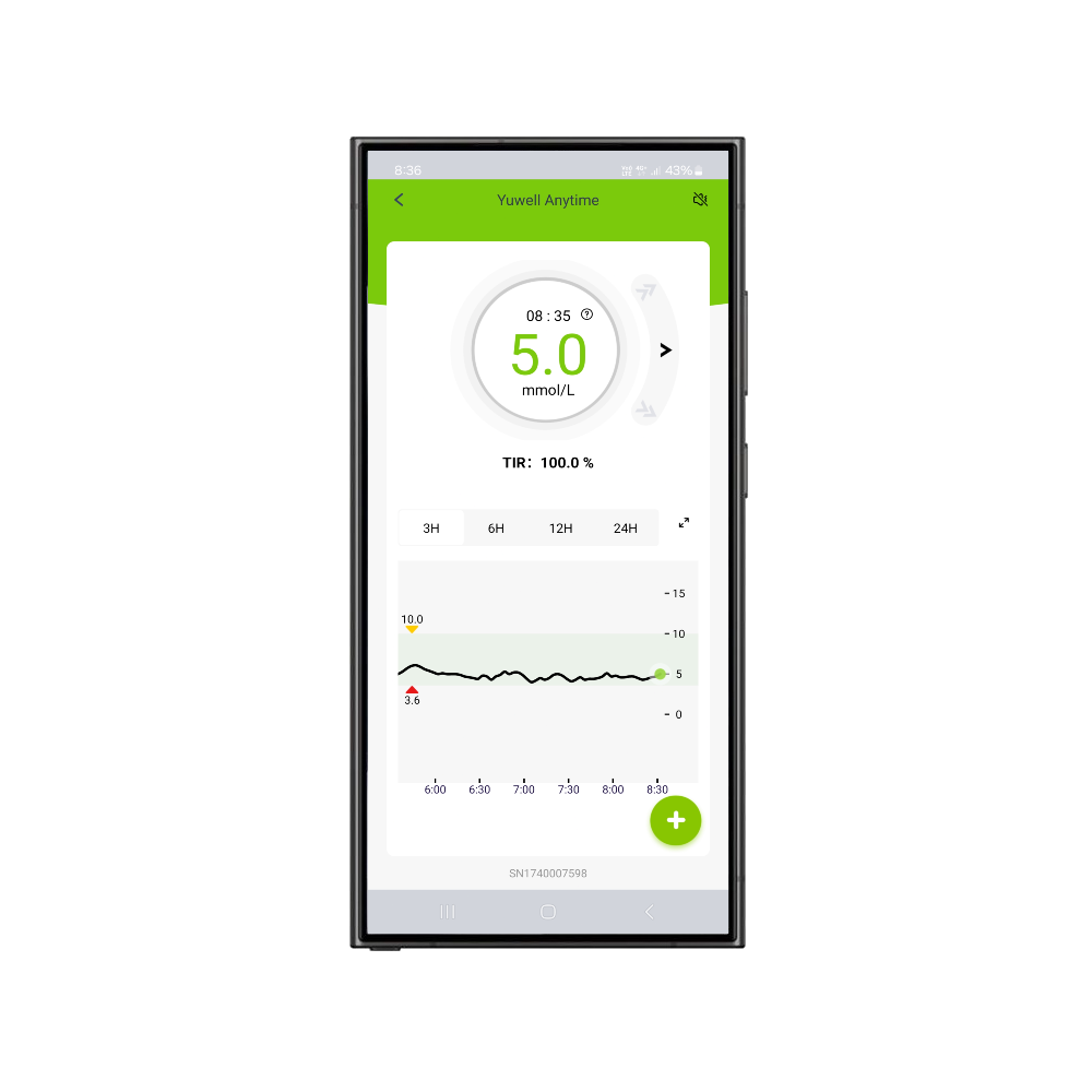 a je možno ho používat až čtrnáct dní. Na aplikovaný senzor se nasune vysílač, který odesílá záznámy o měření přímo da Vašeho telefonu. Vysílač je napájen vestavěným akumulátorem a proto je možné ho používat opakovaně.